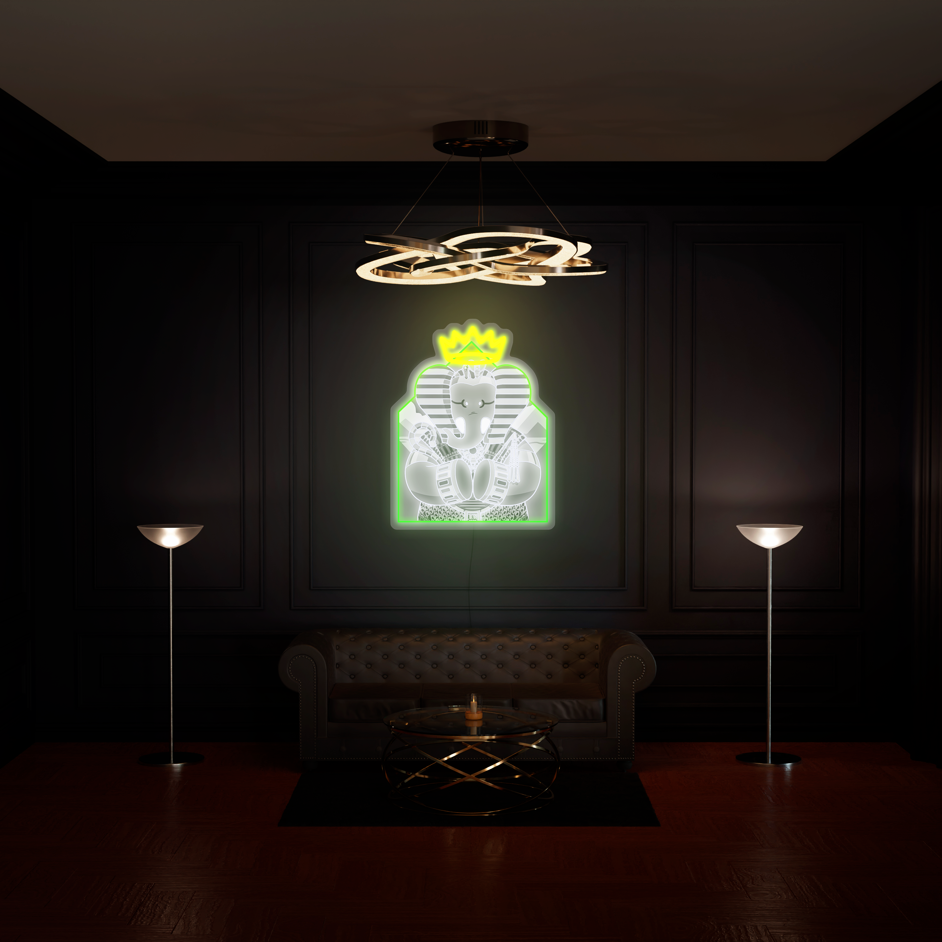 This captivating neon led redefines the art of design, blending the majesty of the elephant with the mythical aura of the pharaohs. With its bold lines and vibrant colors, it transforms your space into a veritable sanctuary of creativity and style. Every detail, from the golden crown to the elephant's imposing stance, embodies a perfect fusion of history, imagination and modern elegance. Add a royal touch to your décor and make your room a unique place, where power and sophistication reign supreme.