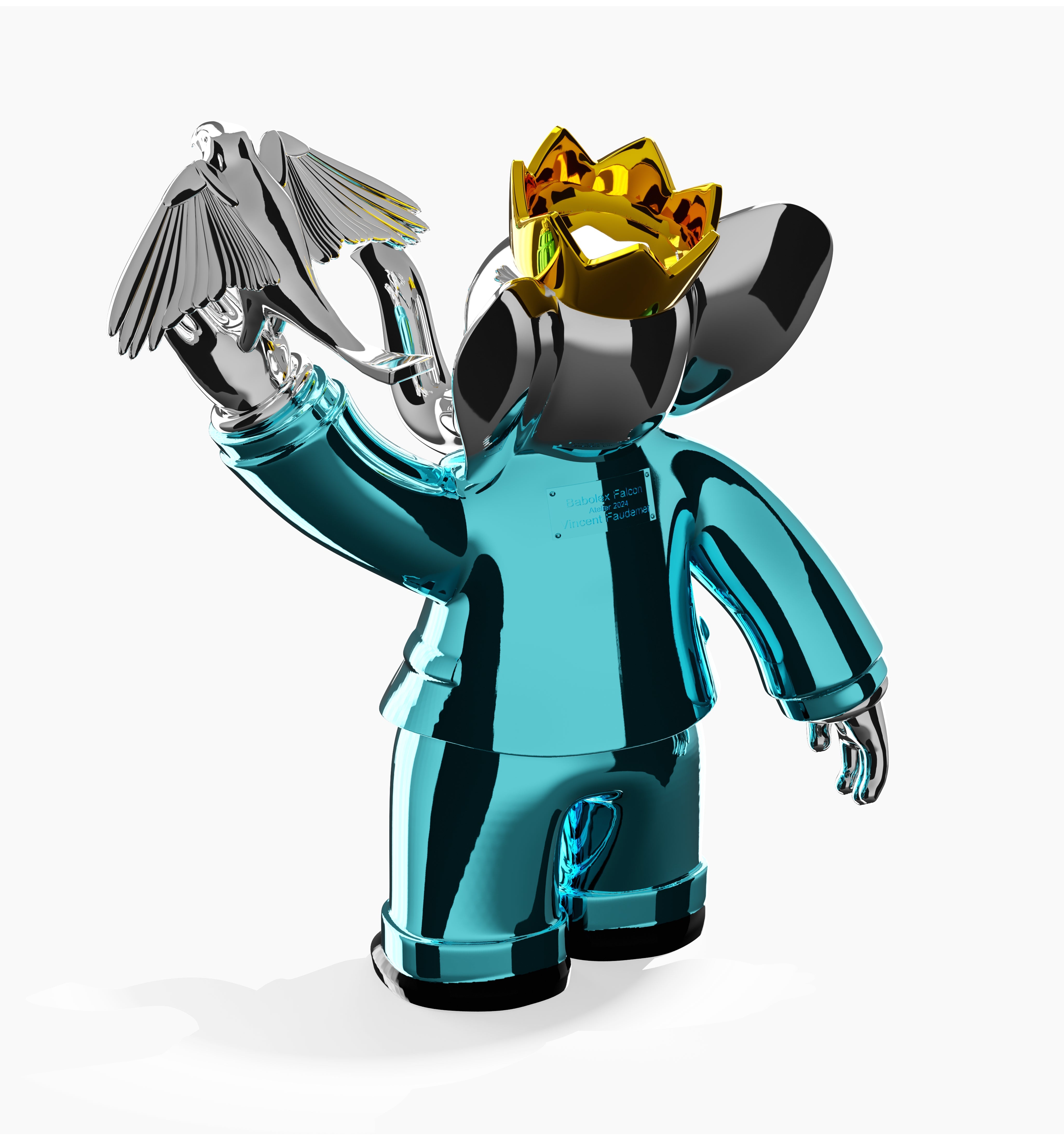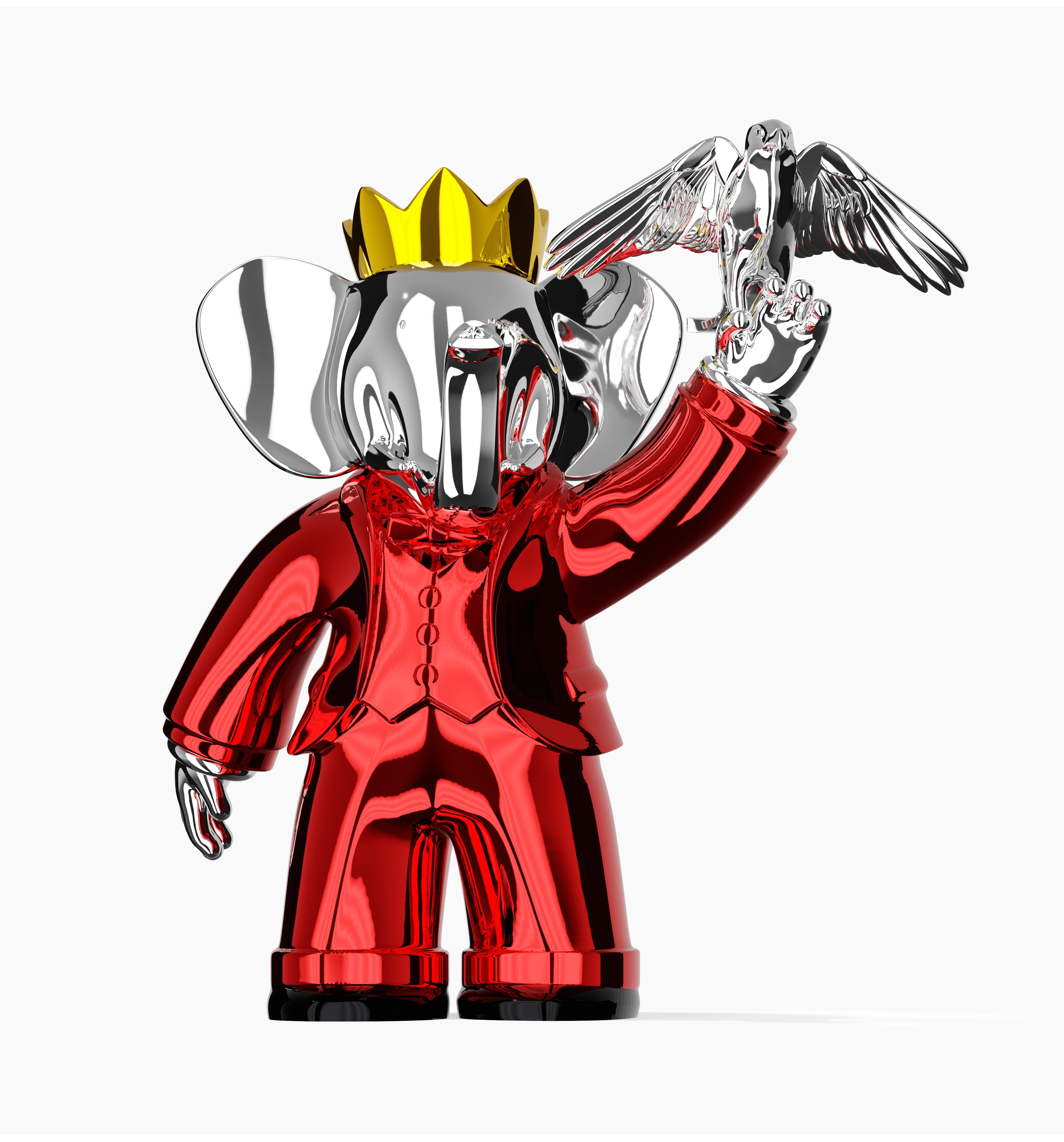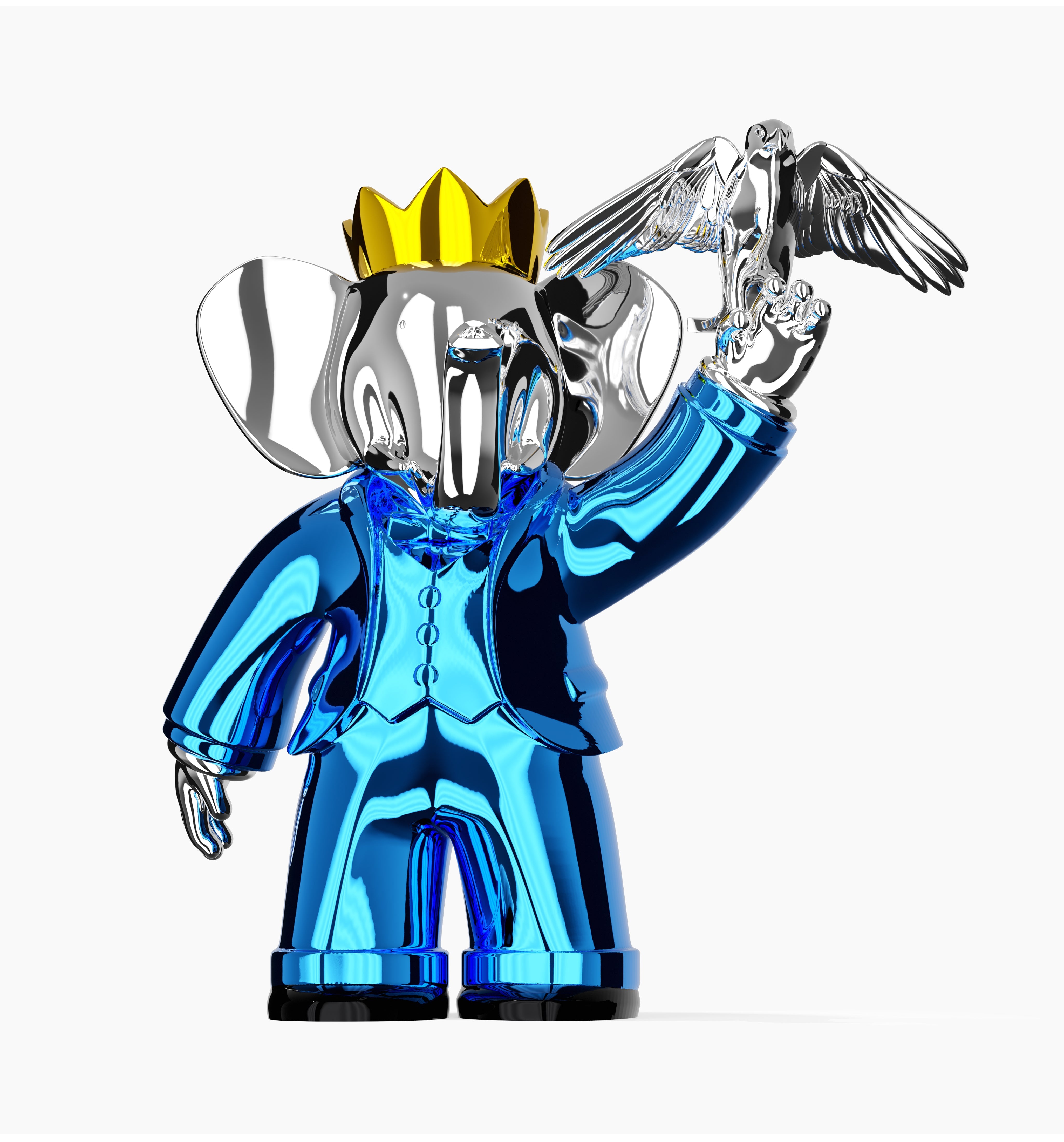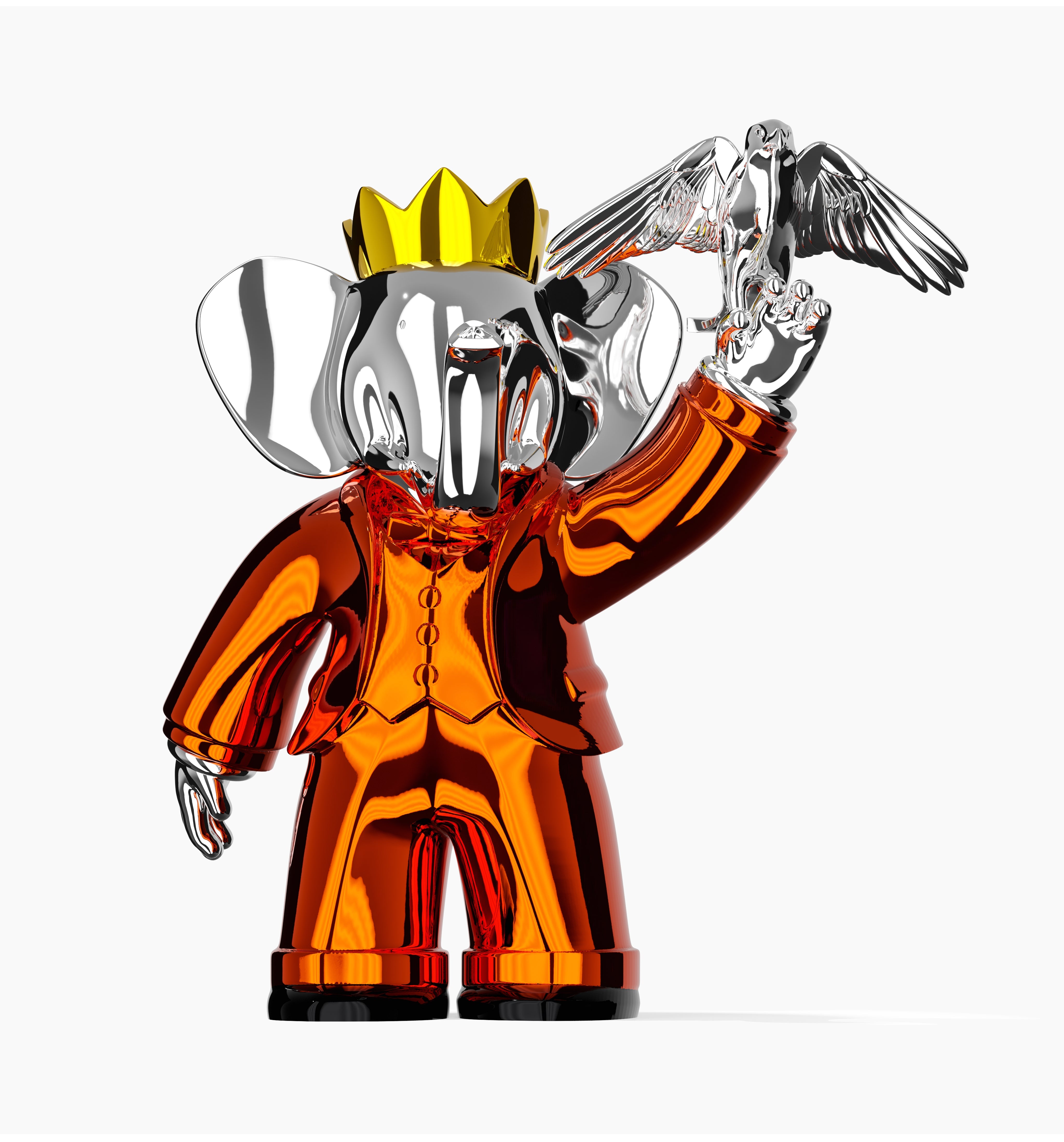 The Babolex Falcon is part of the Childhood Memories collection, which artist Vincent Faudemer began in 2018. This piece brings together two powerful symbols: the falcon, representing strength, freedom, courage, and grace, and the elephant, symbolizing majesty, wisdom, longevity, and a deep connection to ancestral memory. The elephant’s ancient soul, embodying intelligence and a balanced life, merges with the falcon’s spirit, creating a powerful fusion. Faudemer’s work is crafted with high-quality, mirror-effect materials, making it an extraordinary collector’s item that resonates with timeless elegance.