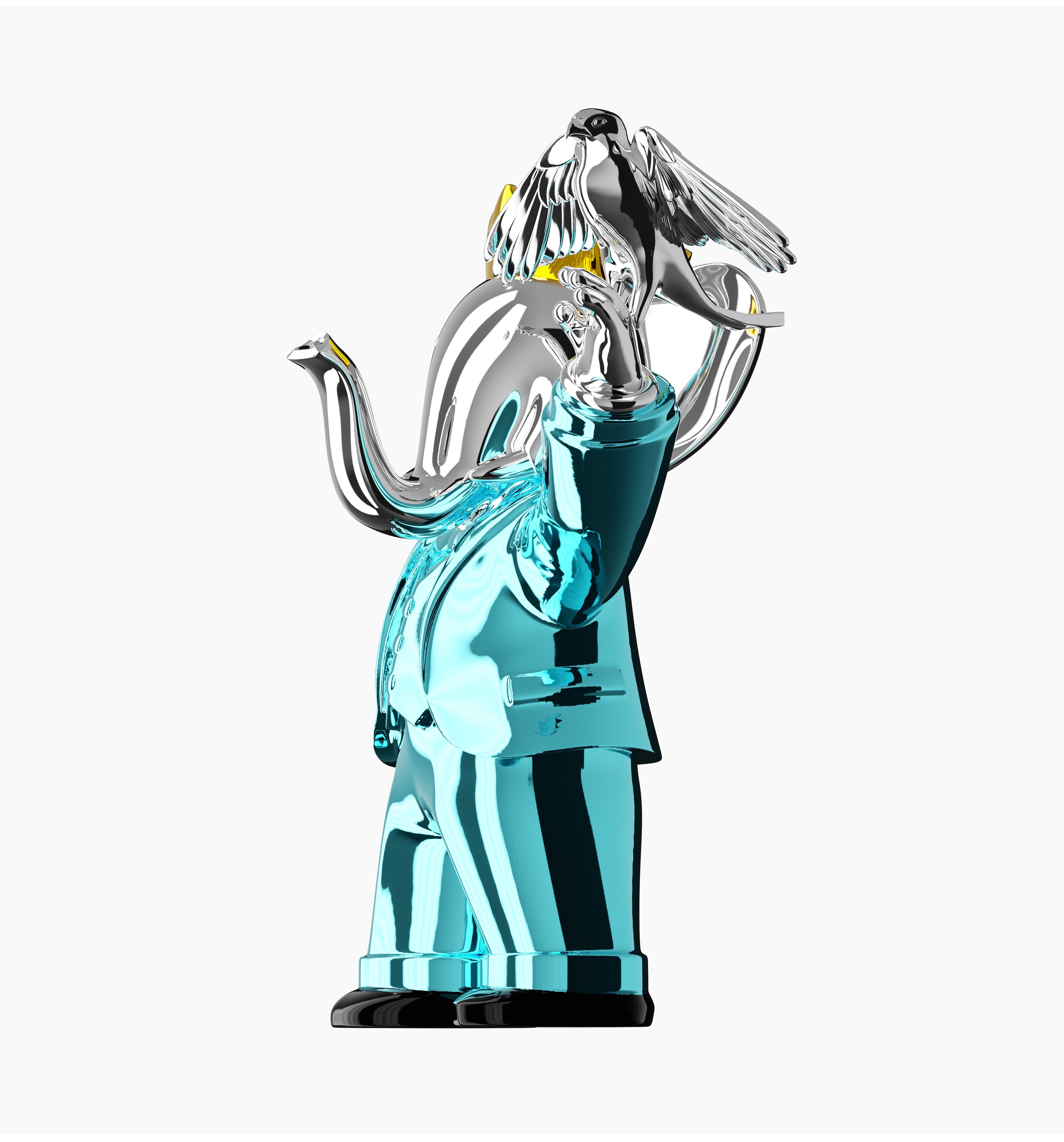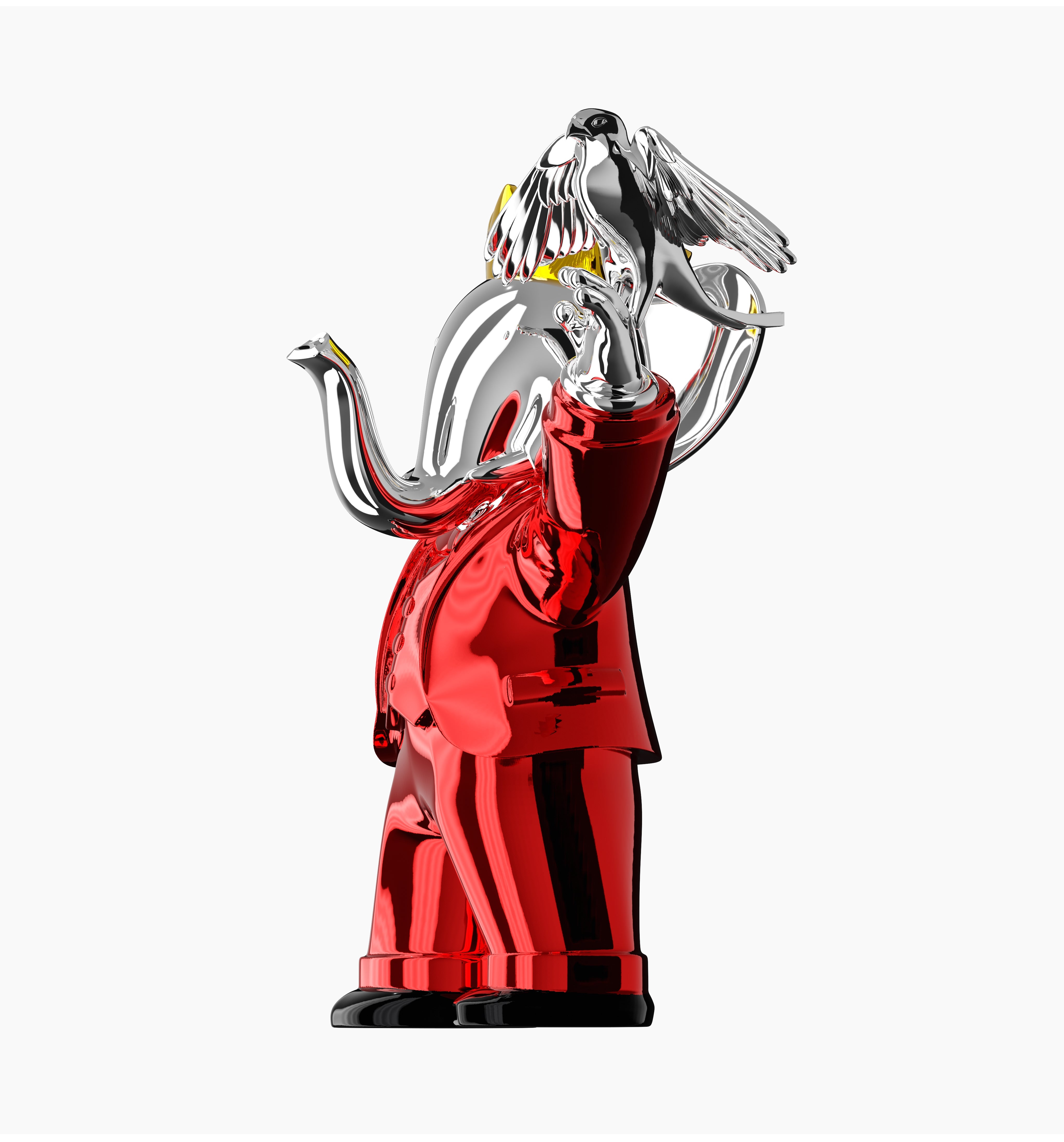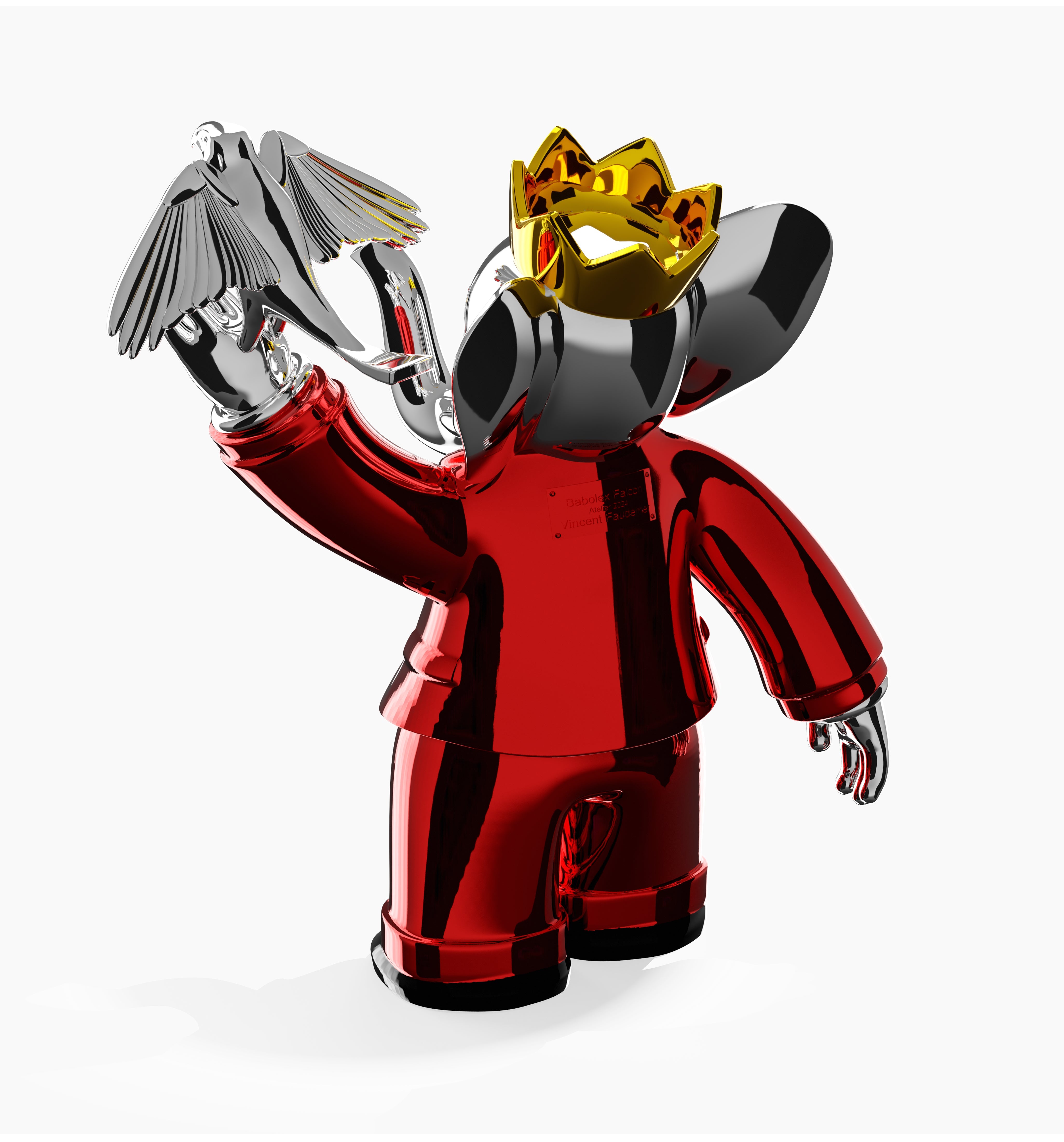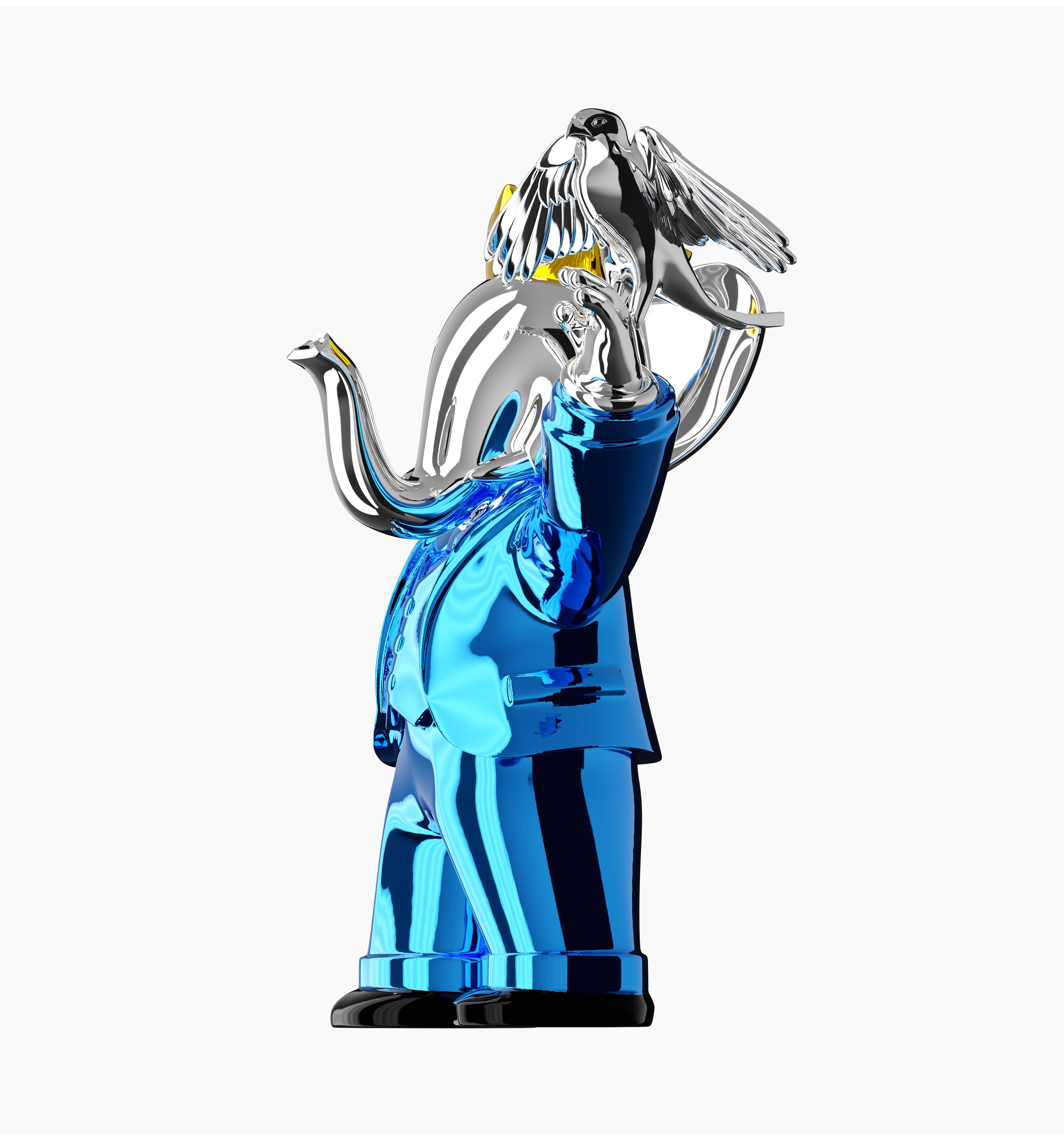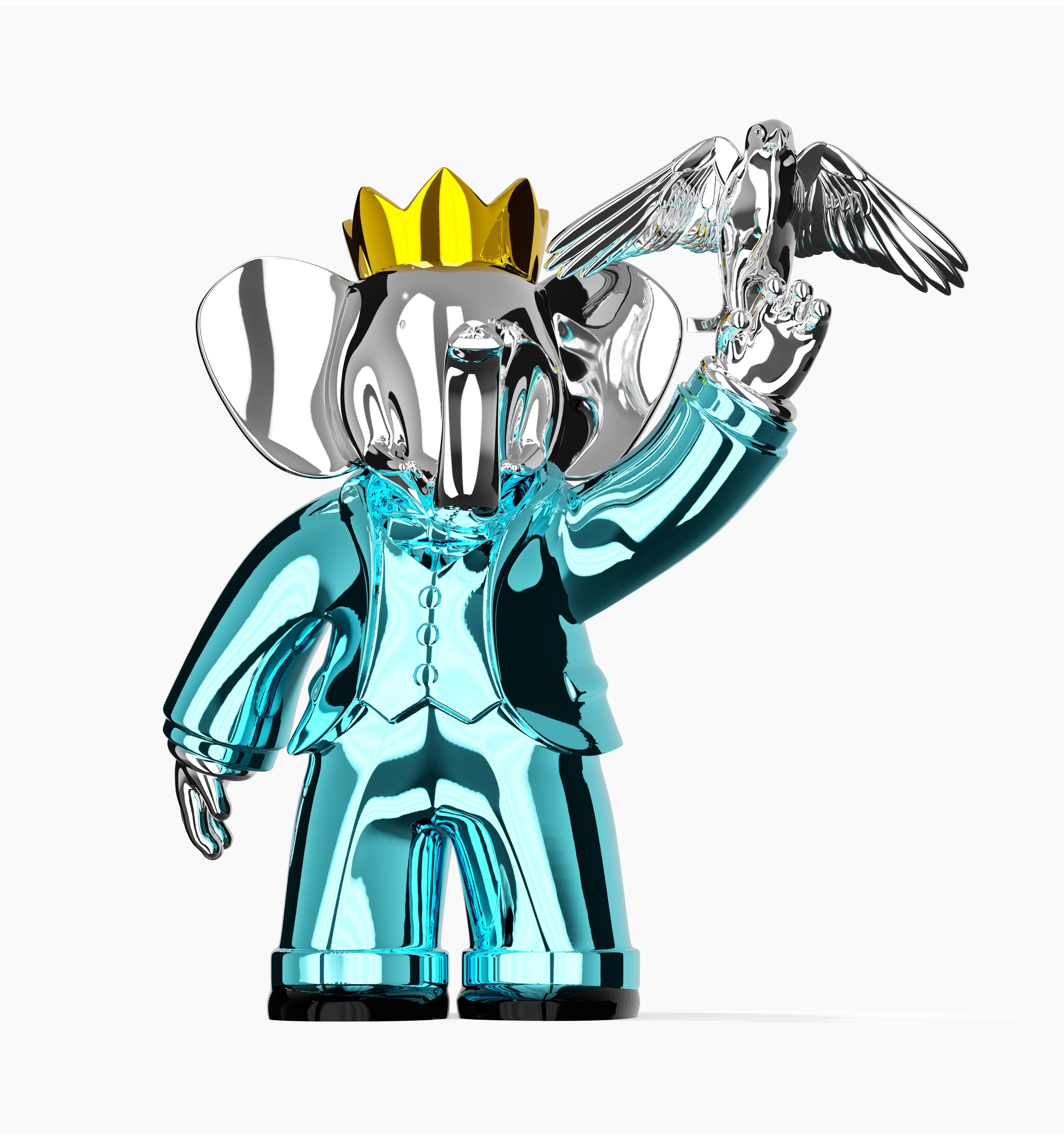 The Babolex Falcon is part of the Childhood Memories collection, which artist Vincent Faudemer began in 2018. This piece brings together two powerful symbols: the falcon, representing strength, freedom, courage, and grace, and the elephant, symbolizing majesty, wisdom, longevity, and a deep connection to ancestral memory. The elephant’s ancient soul, embodying intelligence and a balanced life, merges with the falcon’s spirit, creating a powerful fusion. Faudemer’s work is crafted with high-quality, mirror-effect materials, making it an extraordinary collector’s item that resonates with timeless elegance.