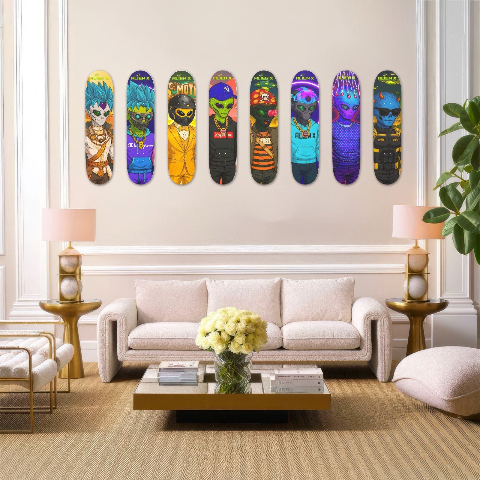 AlienX, figure culte née de l’univers de Faudemer, s’invite sur un support iconique de la culture urbaine : le skateboard de collection. Cette édition mêle art contemporain et esthétique street dans une version audacieuse, conçue pour les collectionneurs et les passionnés.